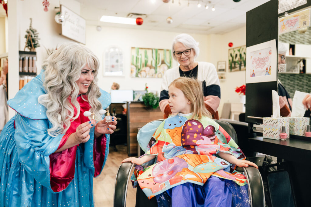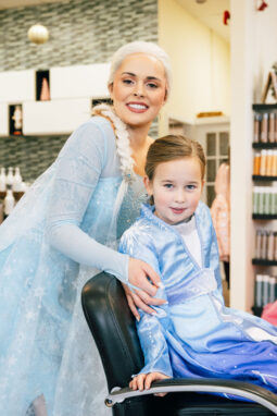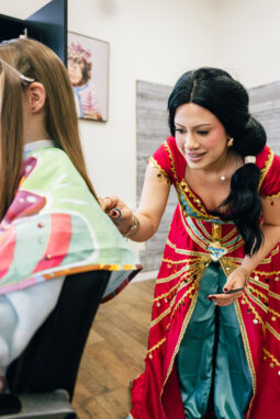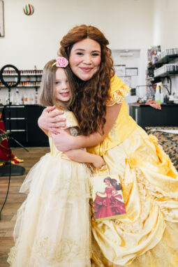 The princesses were so tickled to meet each little guest. They adorned them with sparkling flowers, fairy hair tinsel, colorful extensions, braids, etc. Everyone had such a great time that we’ve decided to make it a quarterly tradition! Moving forward, not only will each special customer get a lovely haircut and blow-dry, they’ll also get a yummy beverage, a surprise goodie bag, a hair embellishment, and their very own tiara to complete the look!